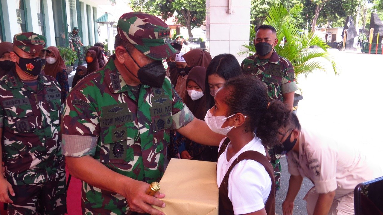Situbondo, seblang.com – Danrem 083/Bdj Kolonel Inf Yudhi Prasetiyo, S.I.P bersama Ketua Persit Koorcabrem 083 Ny. Lisa Yudhi Prasetiyo didampingi Dandim 0823/Situbondo Letkol Inf Neggy Kuntagina, S.I.P melaksanakan peninjauan kegiatan Kodim 0823/Situbondo di SDN 9 Patokan, d isela kunjungan kerja ke Kodim 0823/Situbondo, Jumat (28/03/2022).