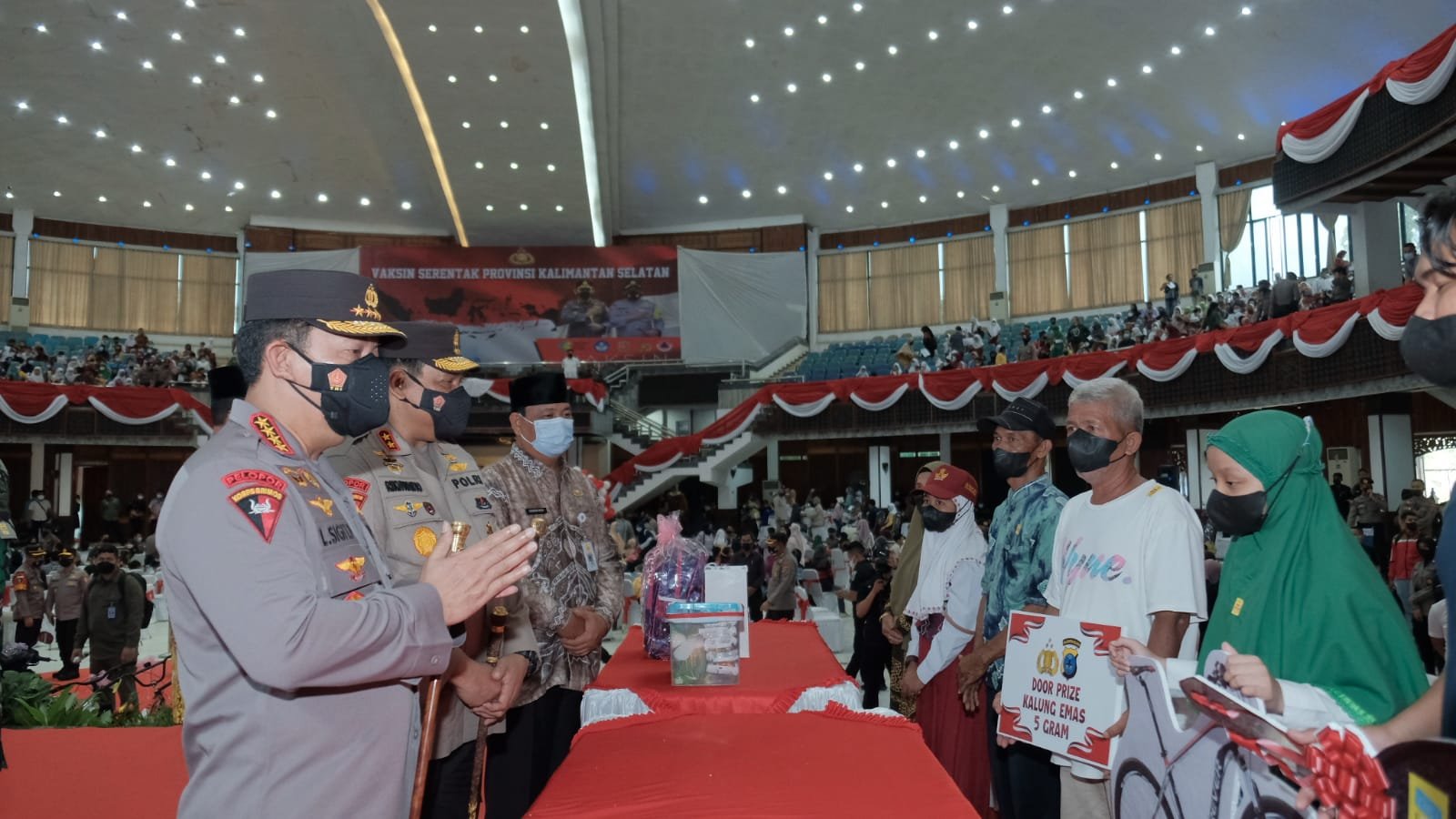 Banjarmasin, seblang.com – Kapolri Jenderal Listyo Sigit Prabowo meninjau secara langsung akselerasi vaksinasi serentak di Gedung Sultan Suriansyah, Banjarmasin, Kalimantan Selatan (Kalsel), Kamis (10/2/2022). Dalam kesempatan ini, ia juga memantau pelaksanaan vaksinasi secara virtual pada 4.988 tempat vaksinasi di 34 provinsi di Indonesia.
