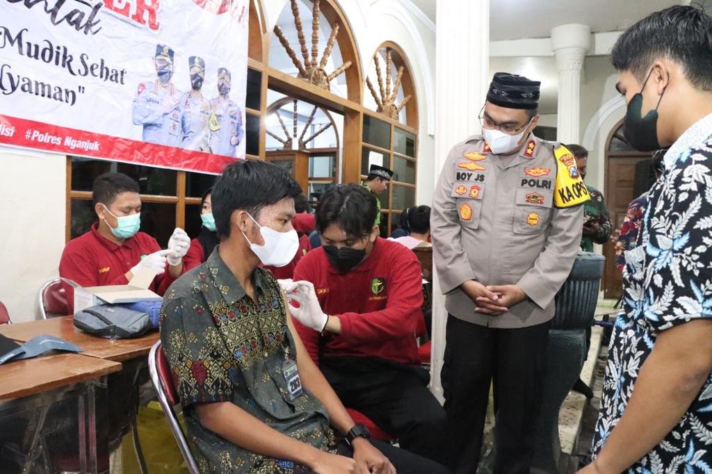 Kapolres Nganjuk AKBP Boy Jeckson, S.H., S.I.K., M.H. menyebut vaksinasi booster dilakukan agar santri bisa mudik dengan aman dan nyaman.