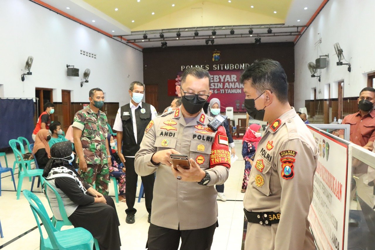 Sesuai arahan Kapolri, untuk mempercepat pencapaian target vaksinasi anak dan lansia, Kapolres Situbondo AKBP Dr. Andi Sinjaya, bersama Forkopimda terus menggenjot pelayanan vaksinasi di gerai Vaksin yang tersebar di 17 kecamatan se-Kab. Situbondo.