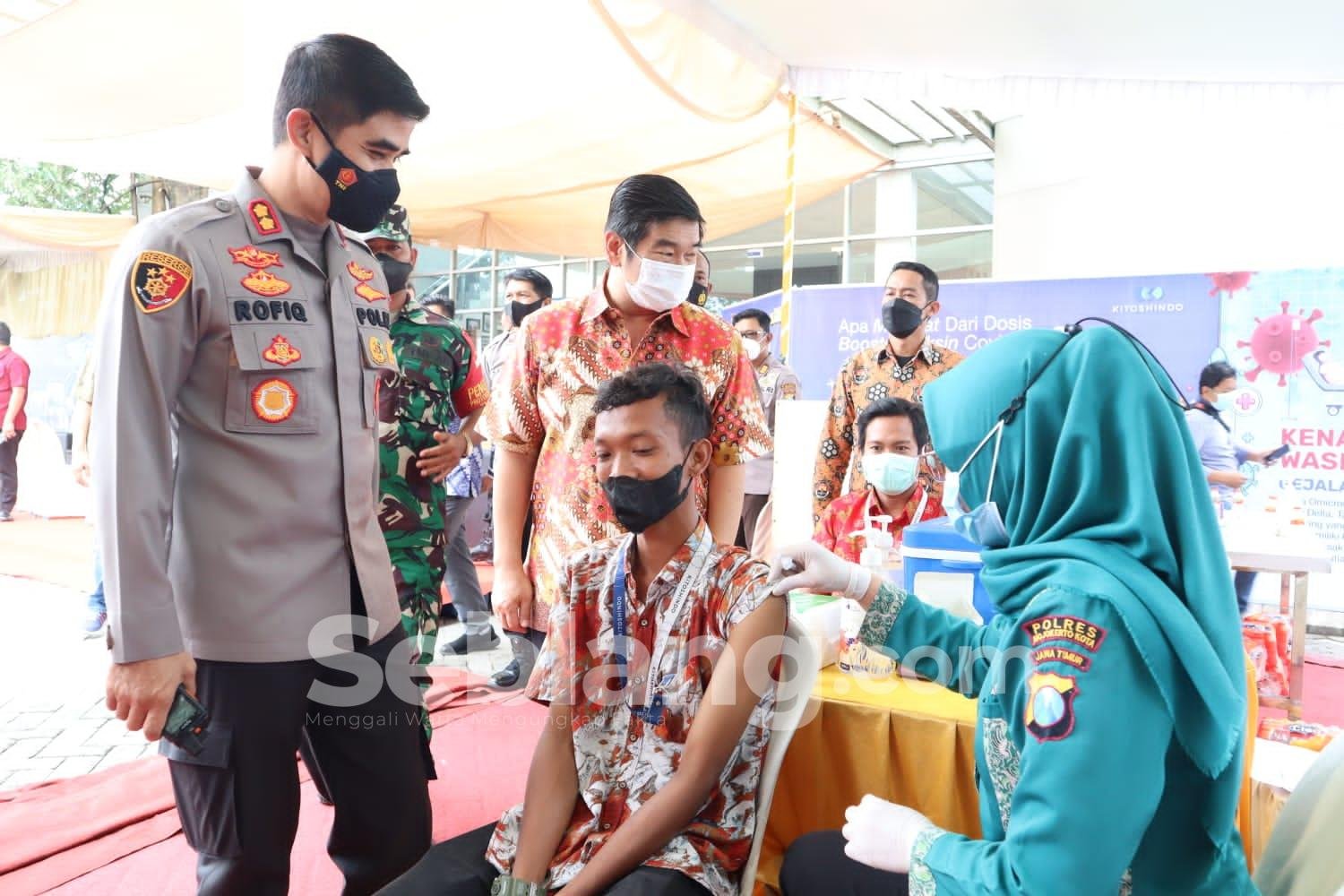 PT Kitoshindo Group ini perusahan yang bergerak di bidang kecantikan dan kesehatan sangat antusias dalam mendukung program pemerintah dengan percepatan Vaksinasi dosis booster, Sebanyak 500 orang karyawan menerima vaksin yang disiapkan Polresta Mojokerto di halaman pabrik. Jumat (18/2/2022).