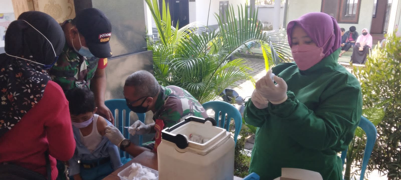 “Keguatan ini dalam rangka percepatan vaksinasi di Kabupaten Banyuwangi. Kegiatan berjalan tertib,” jelas Danramil 0825/07 Cluring.//