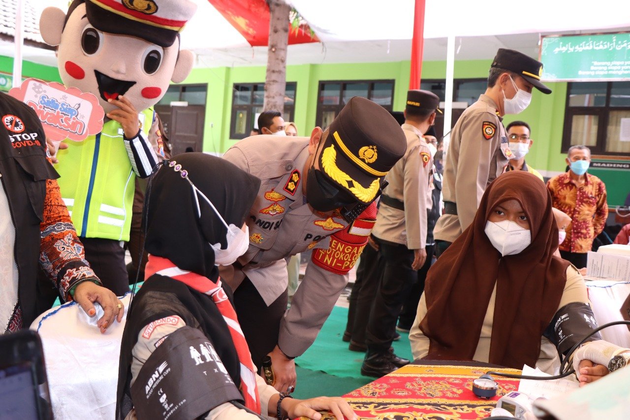 Situbondo, seblang.com – Kapolres Situbondo AKBP Dr. Andi Sinjaya, S.H.,S.I.K.,M.H. bersama Forkopimda melaksanakan pemantauan lapangan vaksinasi anak usia 6-11 tahun dan lansia yang dilaksanakan serentak di 34 provinsi di Indonesia disaksikan langsung oleh Presiden RI Ir. Joko Widodo.
