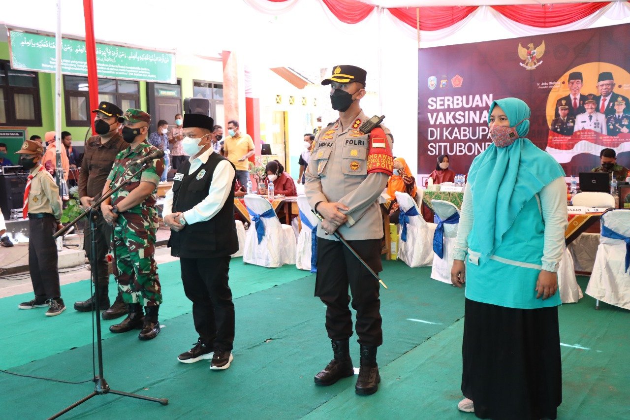 Kapolres Situbondo AKBP Dr. Andi Sinjaya, S.H.,S.I.K.,M.H. menyampaikan sesuai arahan Presiden RI dan Kapolri bahwa akselerasi vaksinasi telah dilakukan serentak oleh Pemerintah Kab. Situbondo bersama TNI Polri dan Instansi terkait untuk menghadapi Covid-19 varian omicron yang saat ini terus meningkat. Untuk diwilayah Kab. Situbondo sendiri sesuai data dari Satgas Covid-19 pada tanggal 17 Februari tercatat 324 kasus aktif.