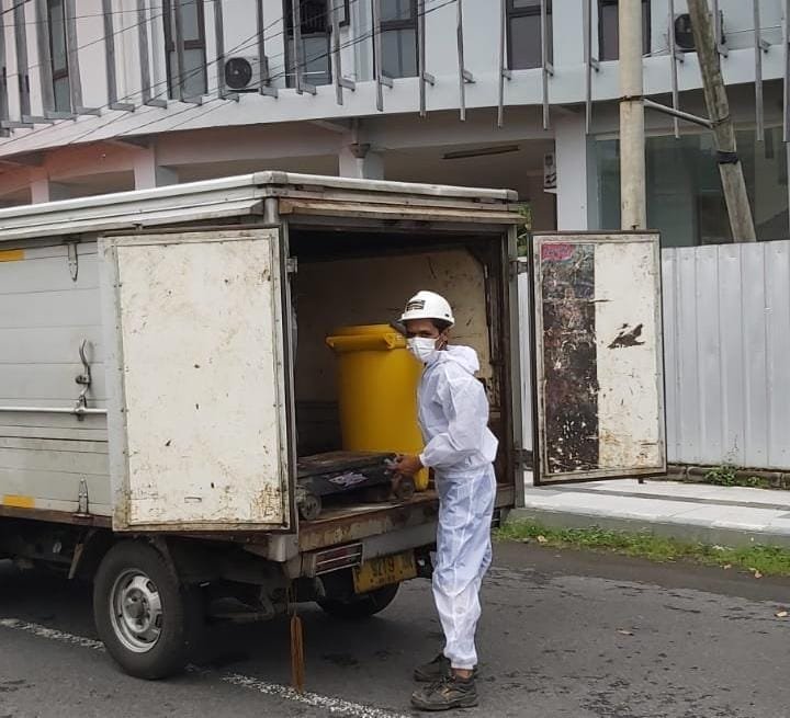 “Petugas yang bertugas mengambil limbah B3 harus mengenakan APD lengkap. Dan menyemprotkan disinfektan terlebih dahulu sebelum mengangkutnya,” ujarnya.