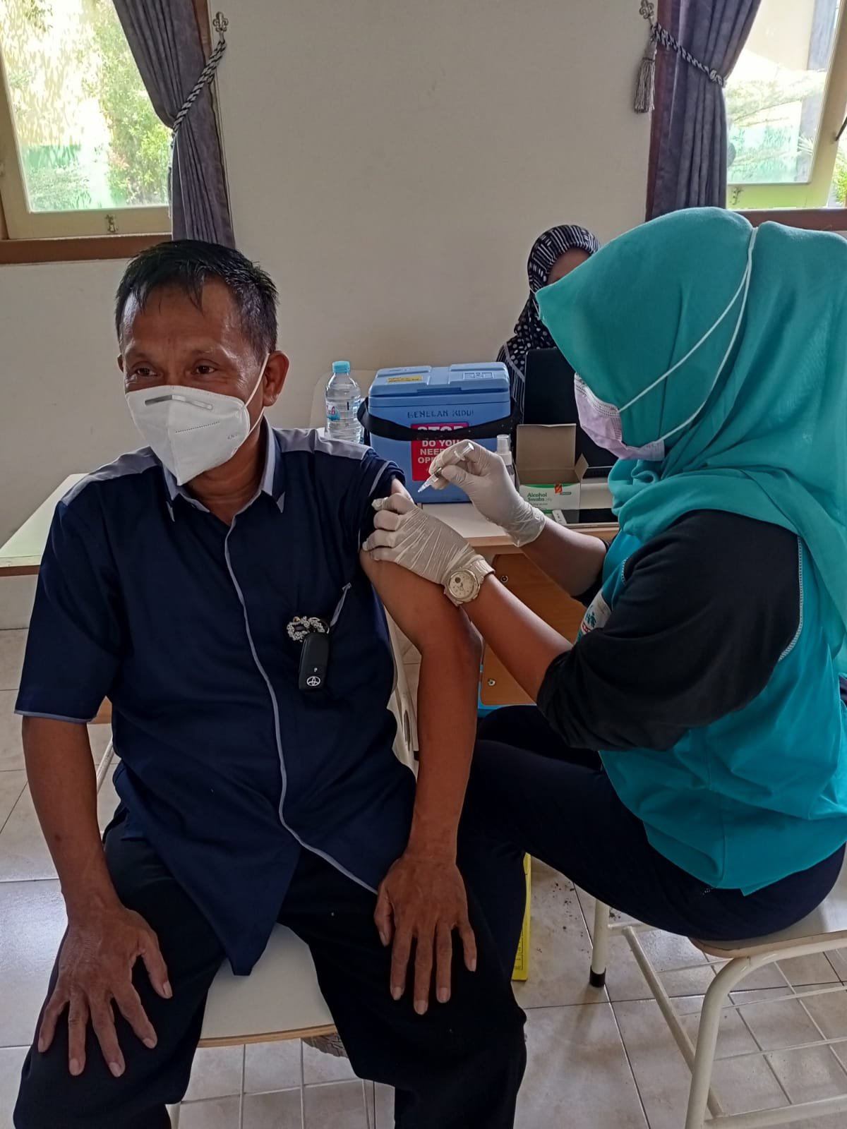 Vaksinasi dosis ketiga secara bersamaan diberikan kepada para pendidik dan tenaga kependidikan di salah satu ruang SMKN Ihya’ulumudin Singojuruh Banyuwangi dari jumlah pendidik di SMKN Ihya’ulumudin sebanyak 100 pendidik yang mengikuti vaksinasi dosis 3(booster)sebanyak 42 pendidik.