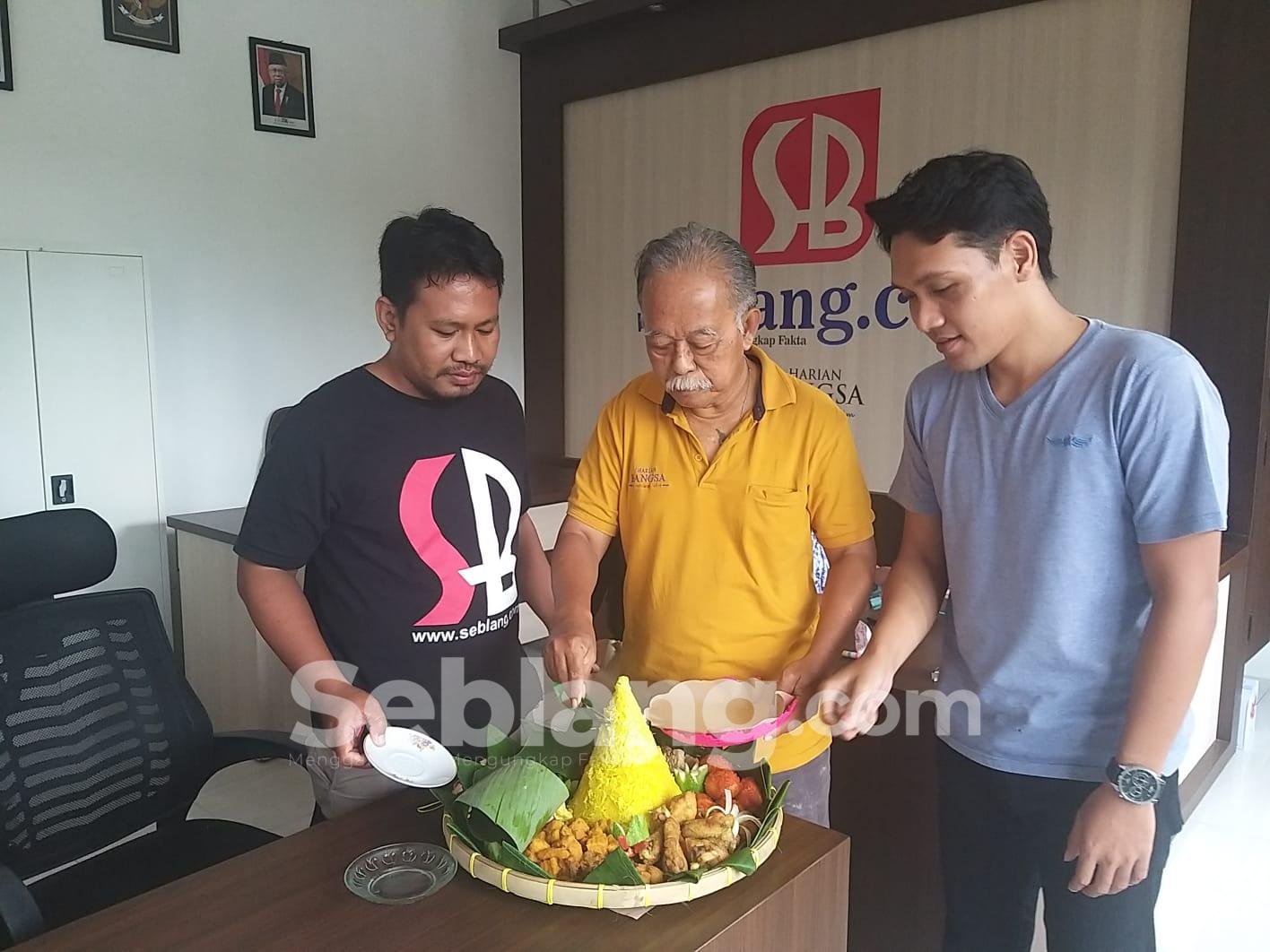 Banyuwangi, seblang.com – Manajemen Mirah Hotel and Resort Banyuwangi mengunjungi kantor redaksi seblang.com dengan membawa nasi tumpeng, Selasa (4/1/2022).