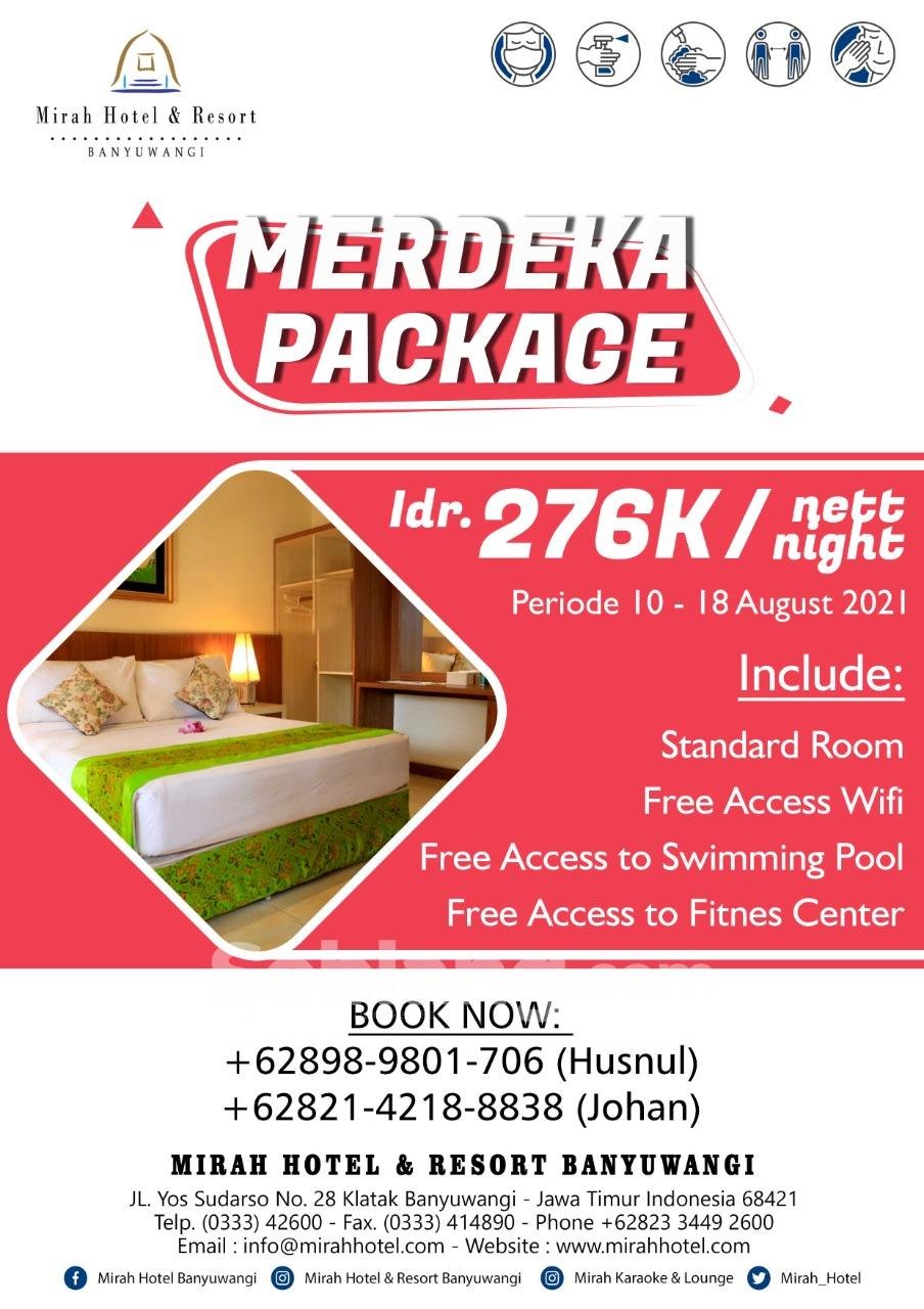 “Rayakan Kemerdekaan RI ke-76 dengan menginap bersama keluarga maupun orang tercinta di Mirah Hotel and Resort Banyuwangi. Mumpung ada promo Merdeka Package yang dibanderol hanya Rp. 276 ribu/malam,” kata Robby.