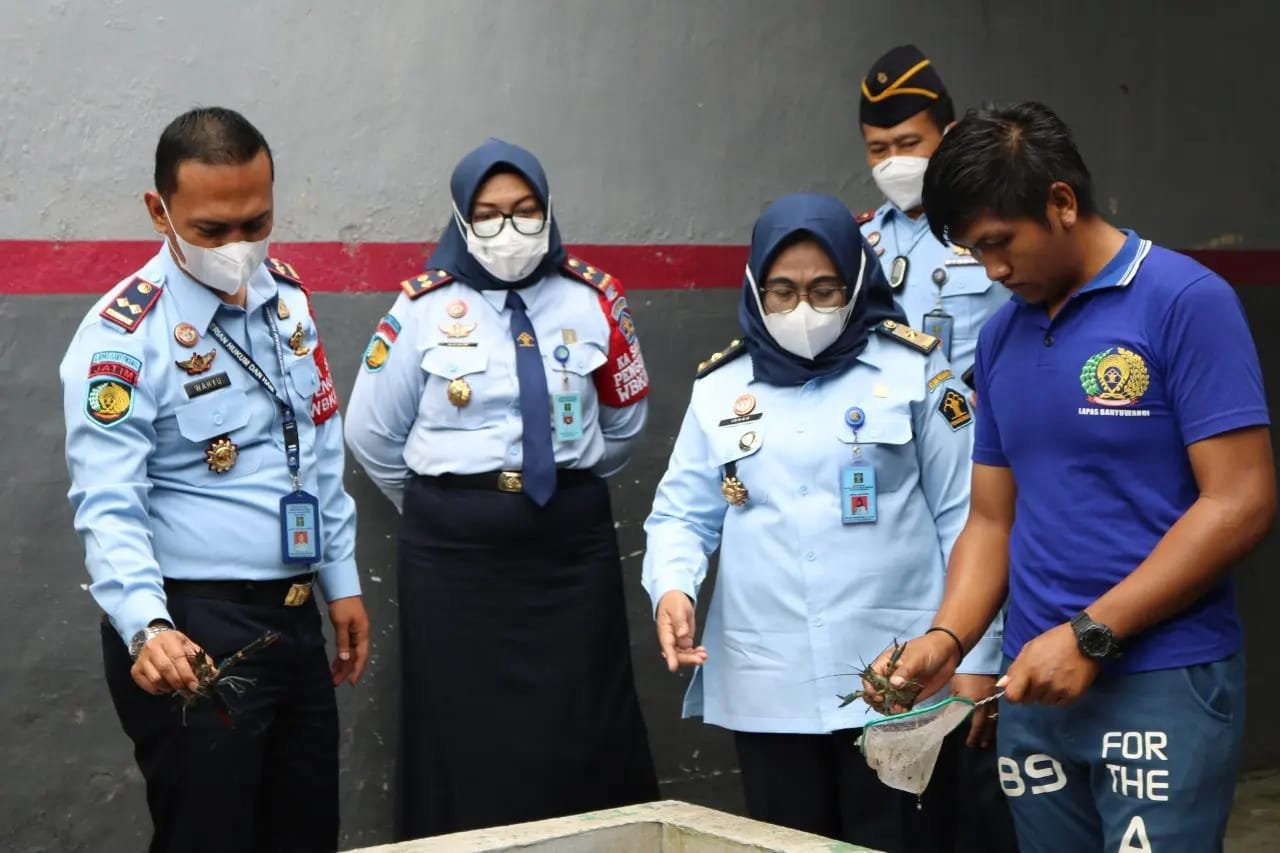 Banyuwangi, seblang.com – Kunjungan kerja dalam rangka menghadiri deklarasi janji kinerja pada satker Kemenkumham Jatim se-Korwil Jember yang berlangsung di Lapas Banyuwangi pada Rabu (19/01/2022) dimanfaatkan oleh Kepala Divisi Administrasi Kanwil Kemenkumham Jatim Indah Rahayuningsih untuk meninjau kegiatan pembinaan di Lapas Banyuwangi, salah satunya budidaya lobster air tawar dan ikan koi.