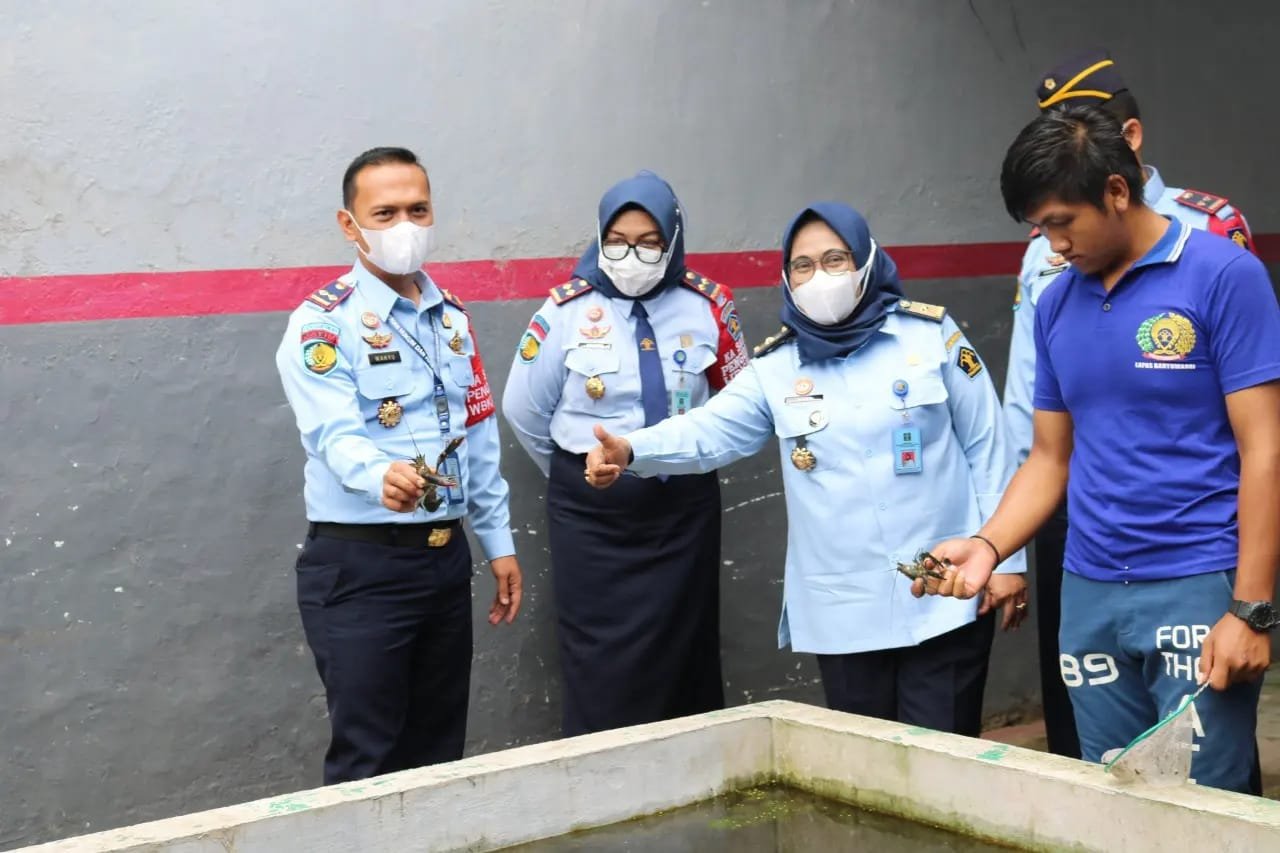 Indah yang didampingi oleh Kalapas Banyuwangi Wahyu Indarto beserta seluruh Kepala Satker se-Korwil Jember meninjau kolam budidaya yang terletak di area brandgang Lapas Banyuwangi tersebut.