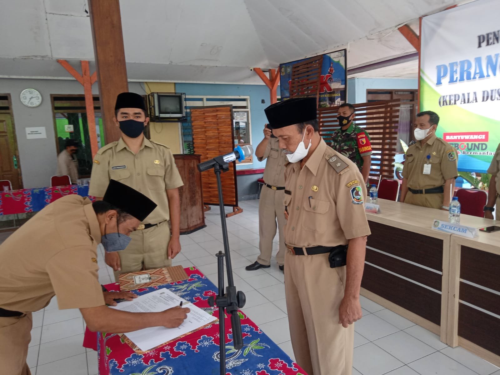 Setelah itu penandatanganan Berita Acara pengambilan sumpah oleh kedua perangkat Desa baru dilanjutkan dengan penyerahan SK oleh Kepala Desa kepada Perangkat Desa yang baru dilantik.