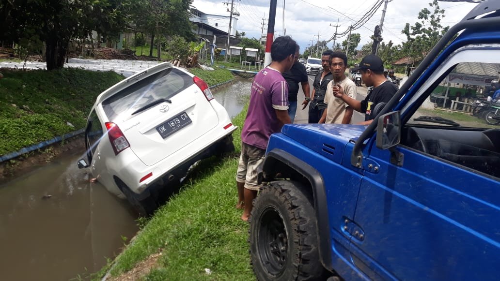 Kejadian laka tunggal mobil masuk ke sungai terjadi Kamis (2/12/21)sekitar pukul 14.15 WIB
