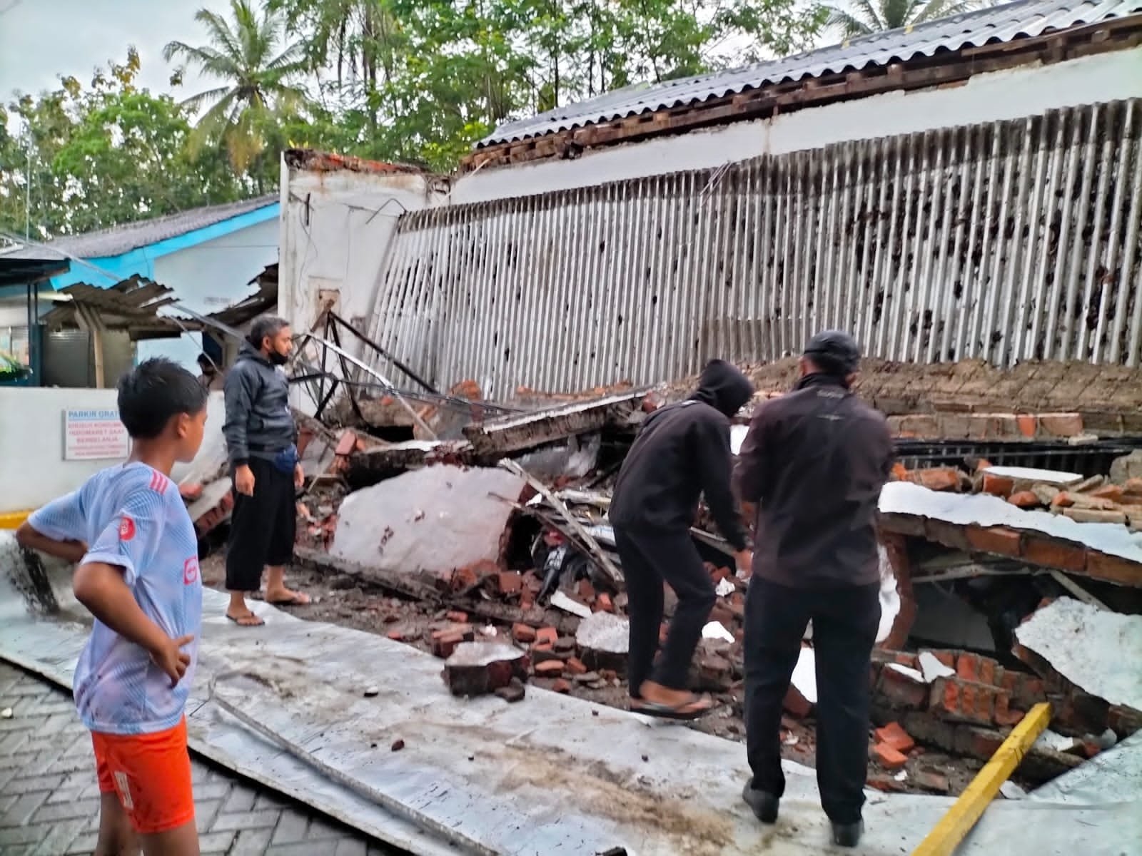 “Iya benar. Bangunan yang roboh di bagian teras,” terang Kapolsek Sempu.