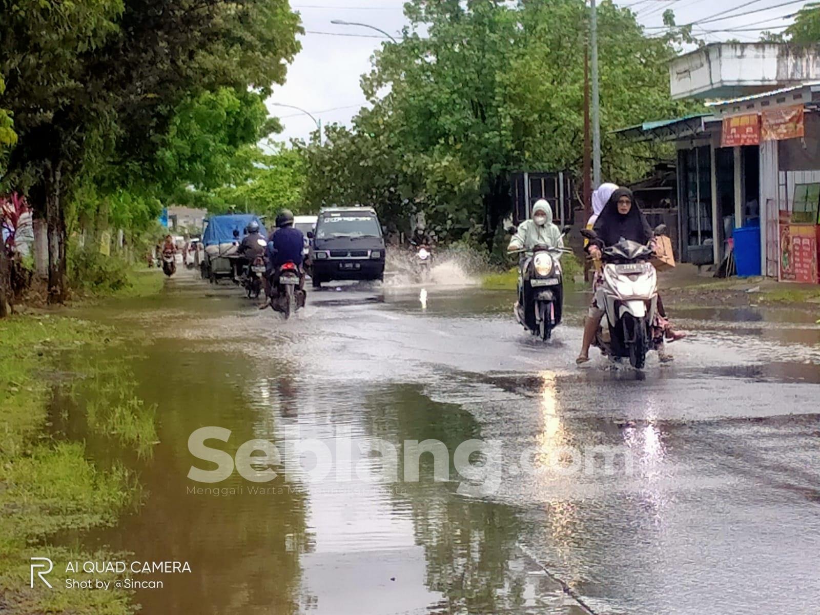 Jalan yang banjir dan menggenang itu, terang dia, karena jalan dan drainase tingginya sama. Sehingga air saat hujan deras tidak bisa mengalir. “Kalau debit air di selokan tinggi, selalu meluap ke jalan raya,” jelasnya.