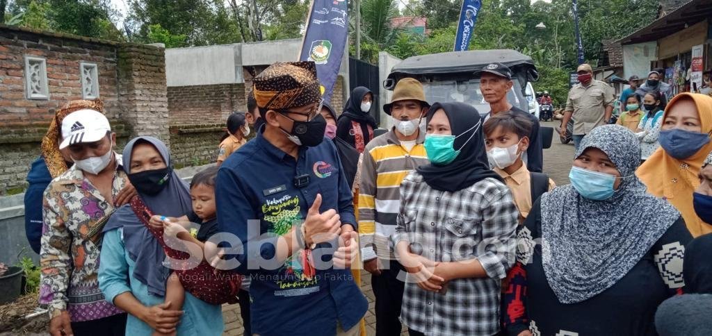 Banyuwangi, seblang.com -;“ Pak Sandi Teko-Pak Sandi Teko, Pak Sandi Teko”…Suara tersebut bergema di sepanjang jalan saat Sandiaga Uno masuk ke dalam perkampungan Desa Wisata Tamansari, Kecamatan Licin Banyuwangi dengan menunggang mobil listrik atau kendaraan golf