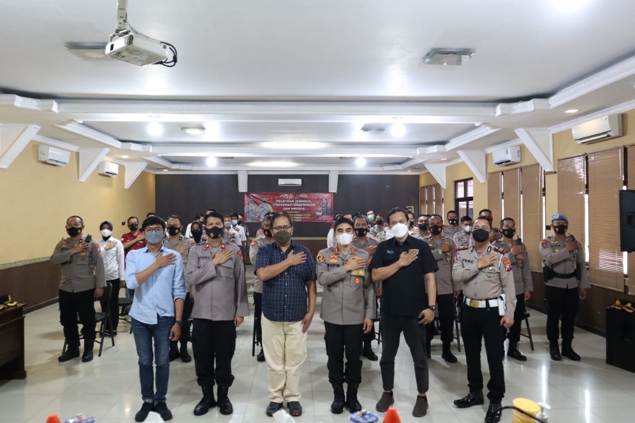 Mojokerto, seblang.com – Dalam rangka pemantapan Komunikasi publik di bidang kehumasan, Polresta Mojokerto menggelar pelatihan jurnalis, videografi smartphone dan medsos dengan narasumer jurnalis professional dari Jakarta dan Surabaya yang diikuti personel Polresta Mojokerto di Aula Prabu Hayam Wuruk, Senin (17/1/2022)