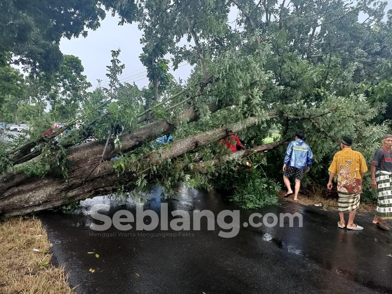 Batang pohon dengan rimbun daun serta dahan dan ranting, mengunci akses jalan Desa Krajan menuju Desa Joketro termasuk arah kota. Lalu lintas kendaraan dari kedua arah di titik lokasi berhenti dan macet. Pengendara yang tergesa terpaksa memutar, mencari jalan alternatif.