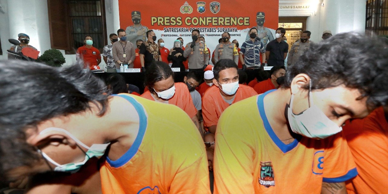 Surabaya, seblang.com – Puluhan bandit jalanan berhasil di ringkus Kepolisian Resor Kota Besar (Polrestabes) Surabaya. Hal ini terbukti dari pengungkapan kasus yang telah dibeberkan oleh Kapolrestabes Surabaya, pada Jumat (4/3/2022) di Mapolrestabes Surabaya.