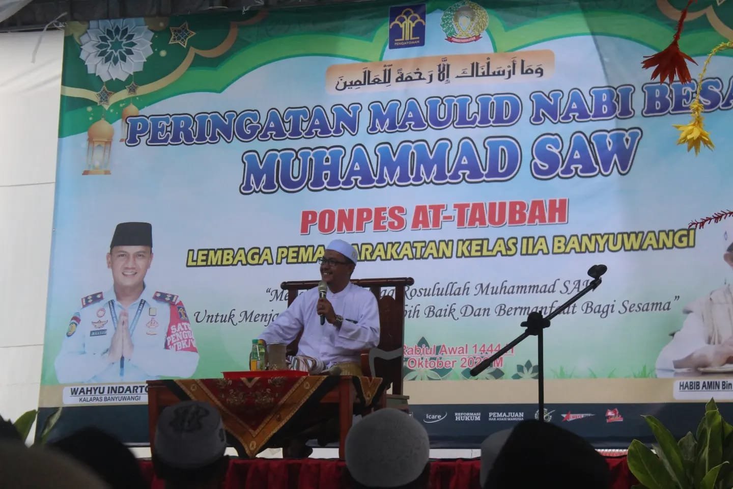 Untuk memberikan siraman rohani kepada warga binaan, kegiatan kali ini turut menghadirkan Habib Amin bin Hasyim Abubakar Alaydrus sebagai pengisi tausiah. Dalam tausiahnya, Habib Amin mengingatkan kepada warga binaan agar tetap tabah menjalani pembinaan di Lapas Banyuwangi.