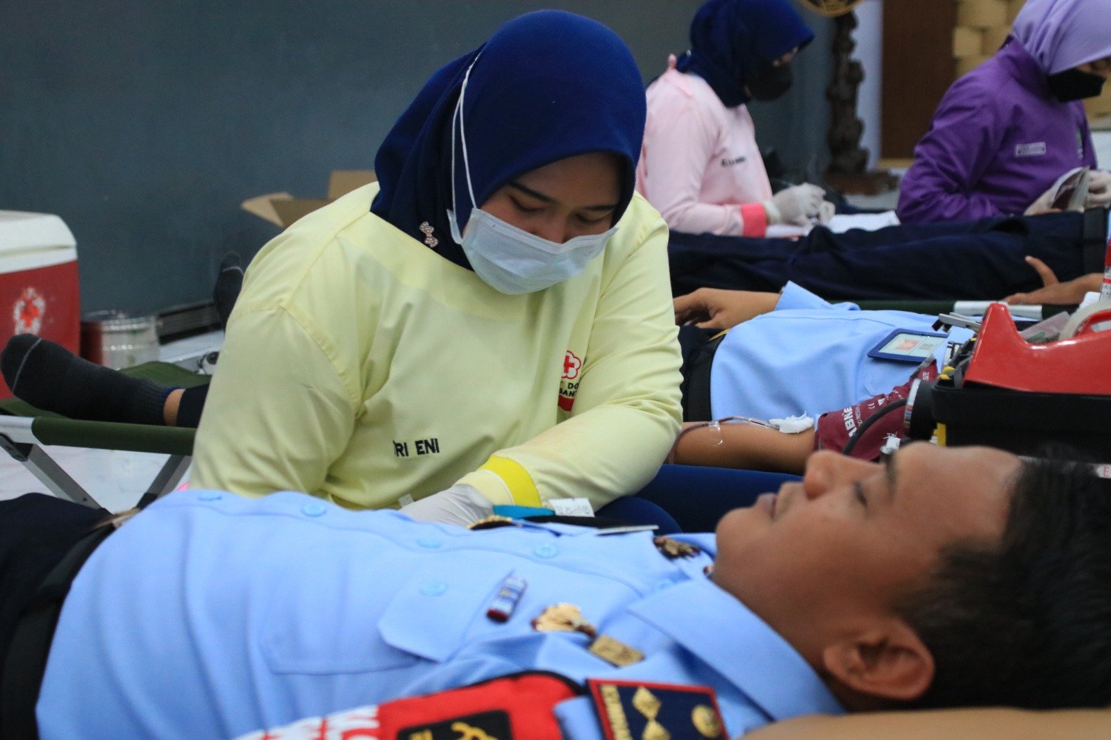 Kegiatan donor darah dilaksanakan di Aula Sahardjo Lapas Banyuwangi dengan menggandeng Palang Merah Indonesia (PMI) Banyuwangi.