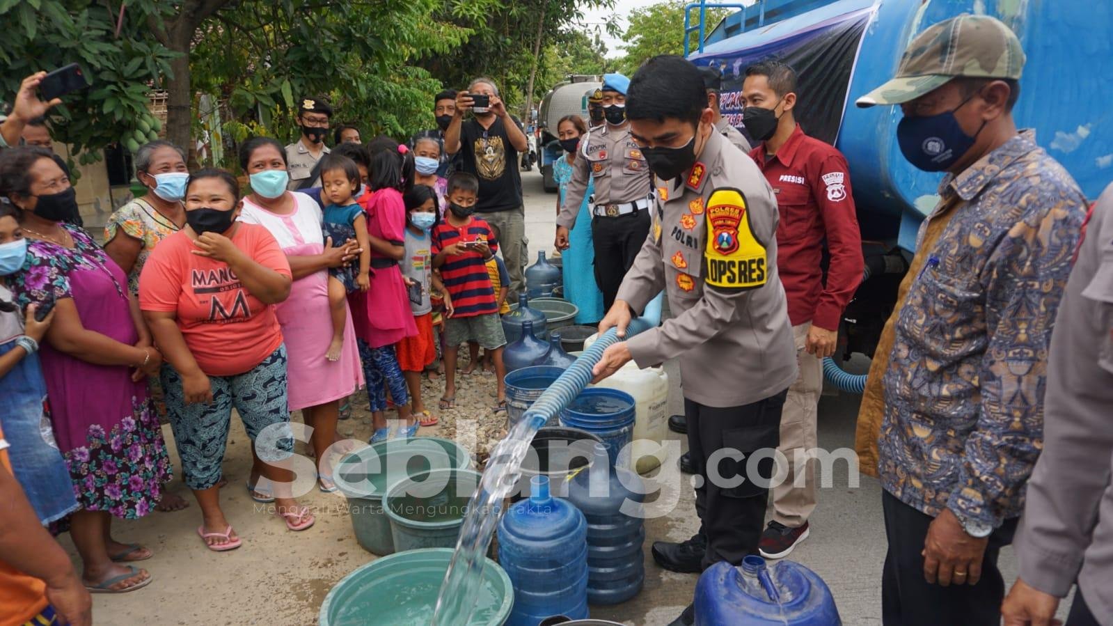 Polresta mengirimkan sebanyak 5 truk tangki atau 30 ribu liter air bersih yang langsung disalurkan ke warga Dusun/Desa Banyulegi, Kecamatan Dawarblandong, Kabupaten Mojokerto, Jawa-Timur,