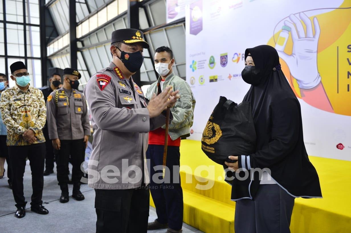 Jakarta, seblang.com – Kapolri Jenderal Listyo Sigit Prabowo meninjau langsung Sentra Vaksinasi Mahasiswa Indonesia (SVMI) di Sarana Olahraga (SOR) Universitas Indonesia (UI), Depok, Jawa Barat, Kamis (12/8/2021).