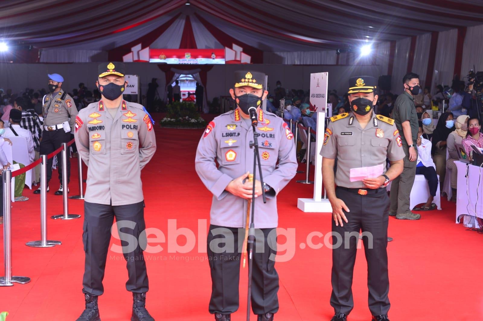 Jakarta, seblang.com – Kapolri Jenderal Listyo Sigit Prabowo menghadiri acara vaksinasi massal dan penyerahan bantuan sosial yang diselenggarakan Alumni Akademi Kepolisian (Akpol) 1997 bataliyon Wira Pratama di Gedung eks Mapolres Bandara Soetta, Tangerang, Banten, Senin (20/9/2021).