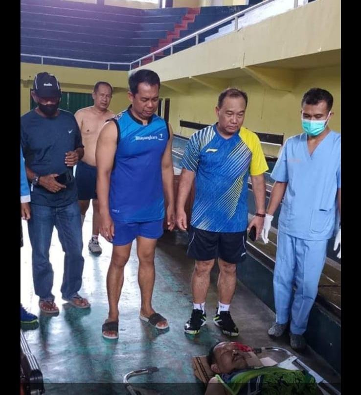 Namum baru satu set permainan tiba-tiba korban terlihat pucat dan kelelahan lantas rekan – rekan korban menyuruhnya untuk menyudahi latihan sembari beristirhat untuk memulihkan tenaganya.