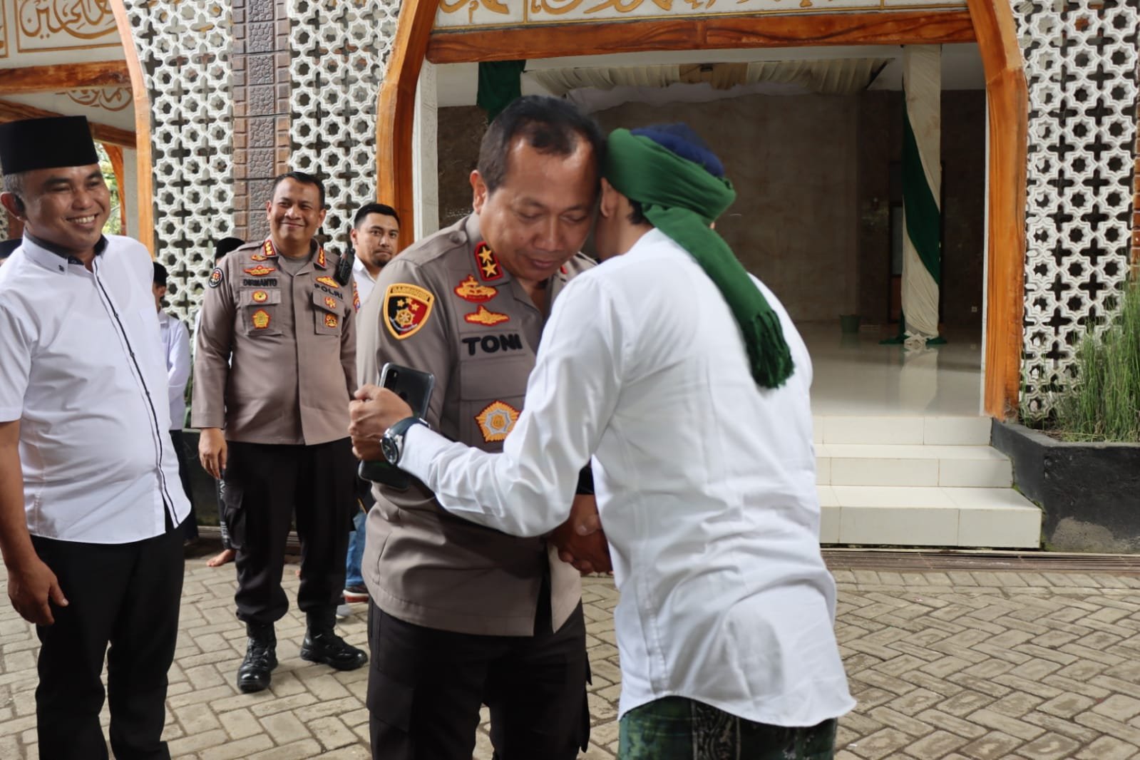 Kedatangan Kapolda Jatim disambut hangat oleh Romo Soeroso bersama pengurus pesantren dan seluruh santri putra yang ada di pondok tersebut.