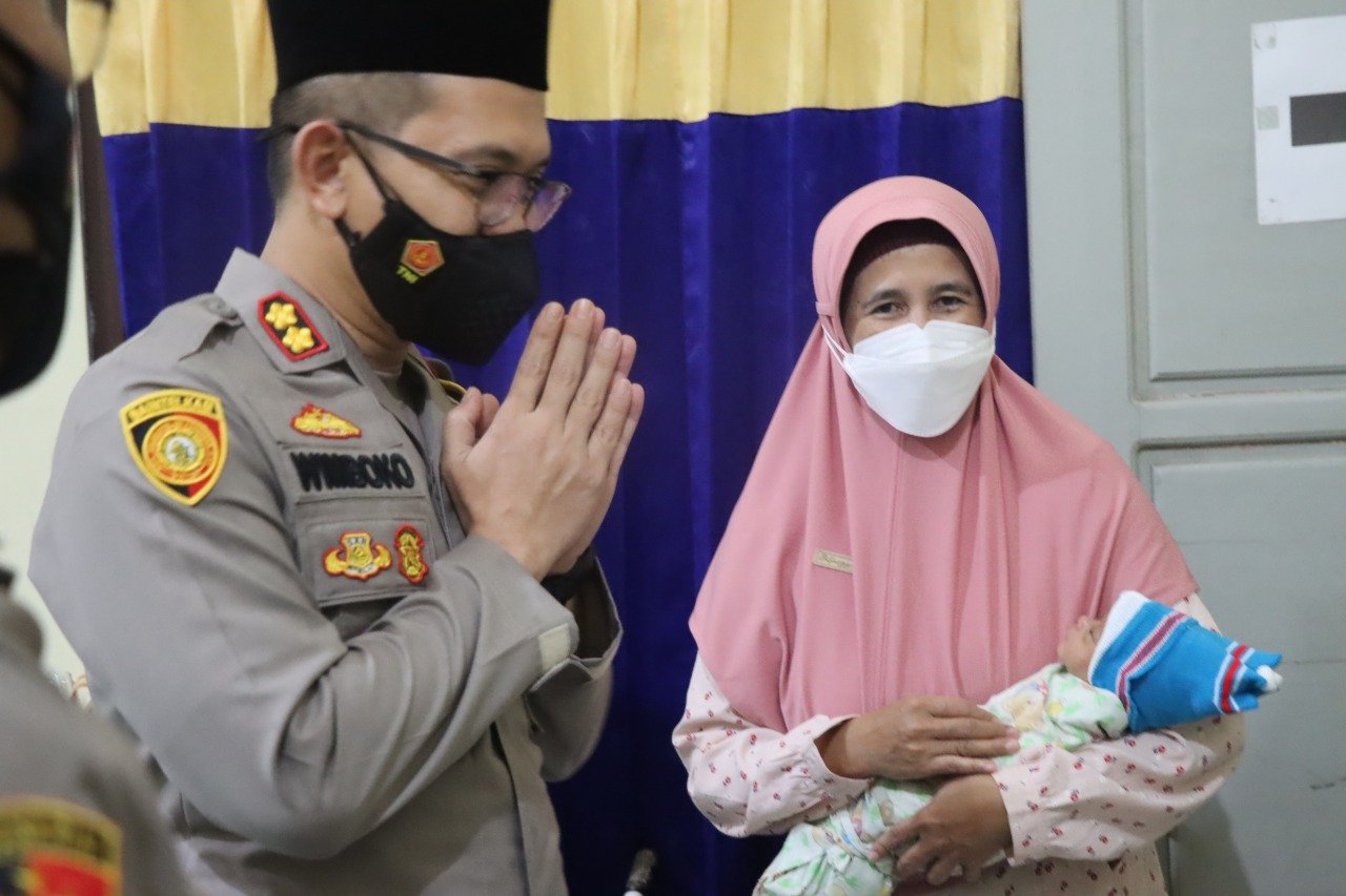 Bersama anggotanya, Kapolres Bondowoso menyambangi bayi yang kini tengah dirawat setelah ditemukan masih dengan ari-arinya di Desa Poncogati, RT 9 RW 02, Kecamatan Curahdami, Rabu (2/3/2022).