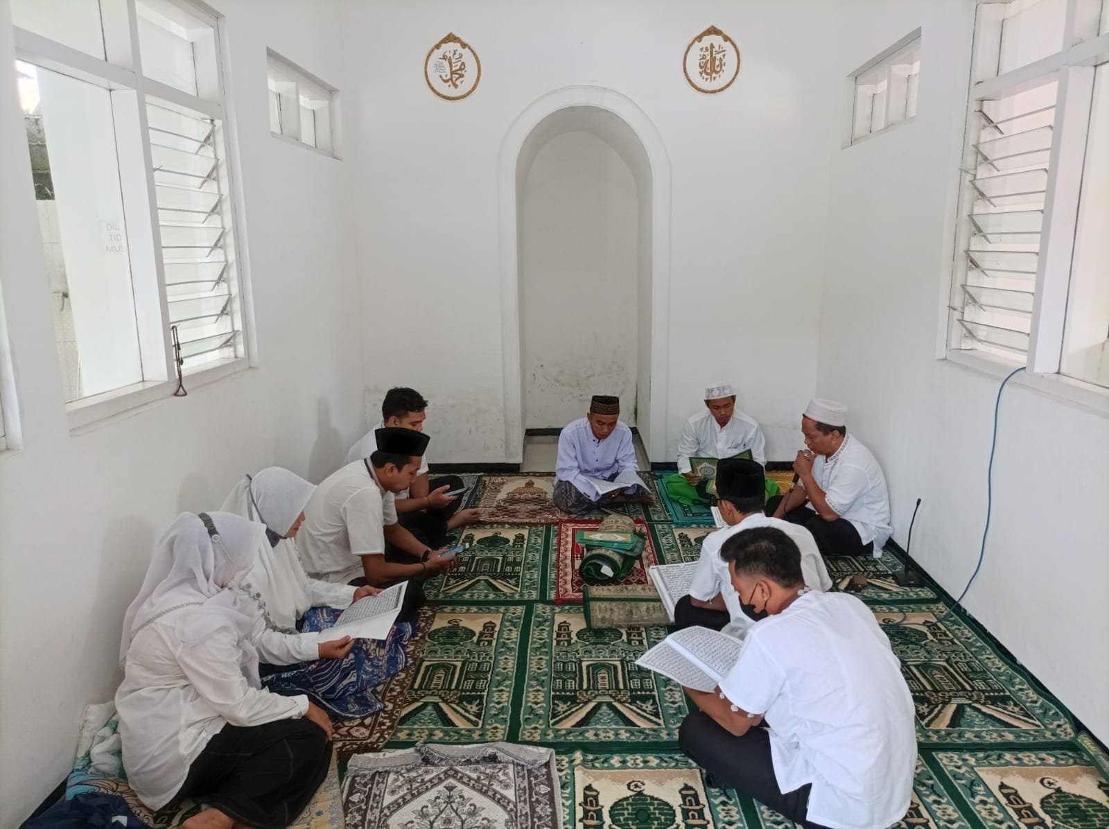 Mereka secara bersama-sama melantunkan ayat-ayat suci al-quran mulai pukul 08.00 hingga menjelang Magrib nanti.