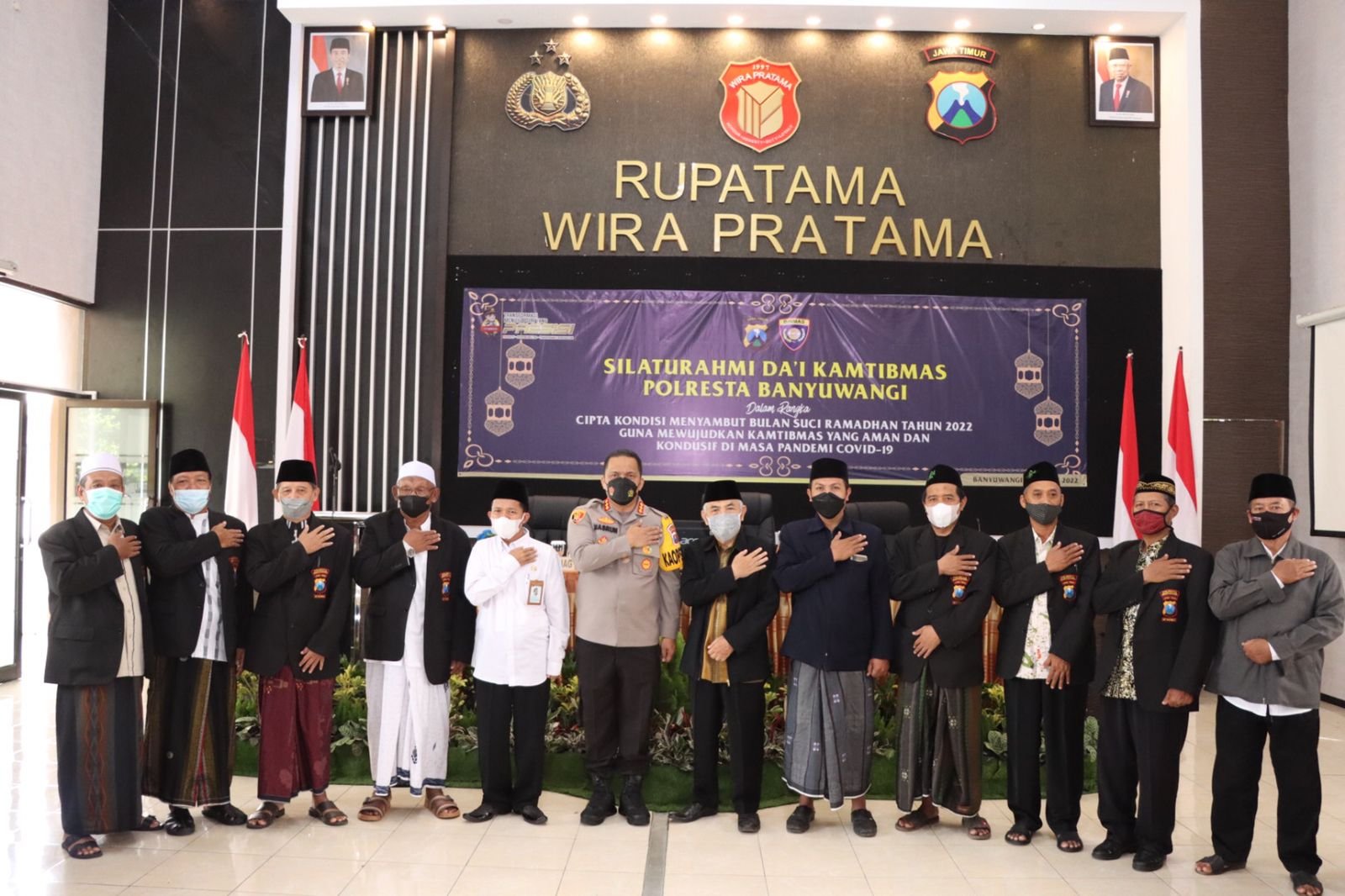 Banyuwangi, seblang.com – Dalam rangka cipta kondisi menyambut bulan suci Ramadan tahun 2022, Polresta Banyuwangi menggelar silahturahmi dengan pada Dai se-Kabupaten Banyuwangi di Rupatama Wira Pratama Polresta Banyuwangi, Selasa (29/3).