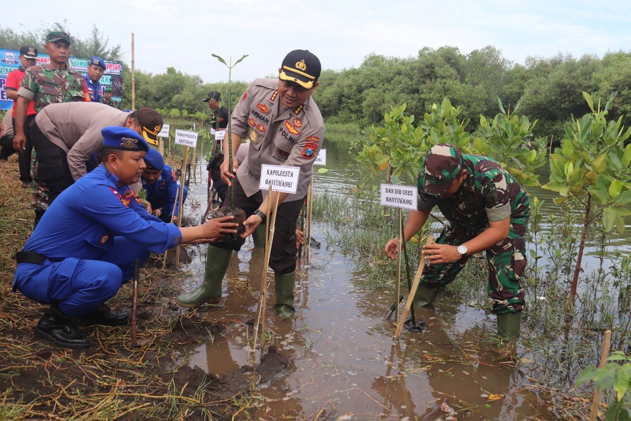 Polresta Banyuwangi Tanam Mangrove di Pantai Cemara