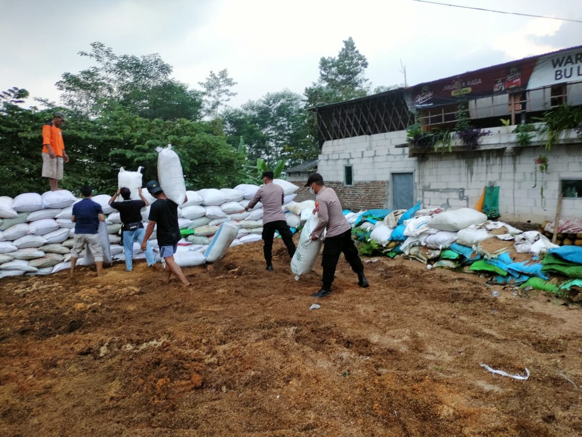 Mojokerto, seblang.com – Polres Mojokerto Polda Jatim bekerjasama dengan BPBD Kabupaten Mojokerto serta dibantu para relawan dari relawan Welirang dan LDNU, melakukan perbaikan dan pembenahan barikade karung sekam di jalur penyelamat Cangar-Pacet.